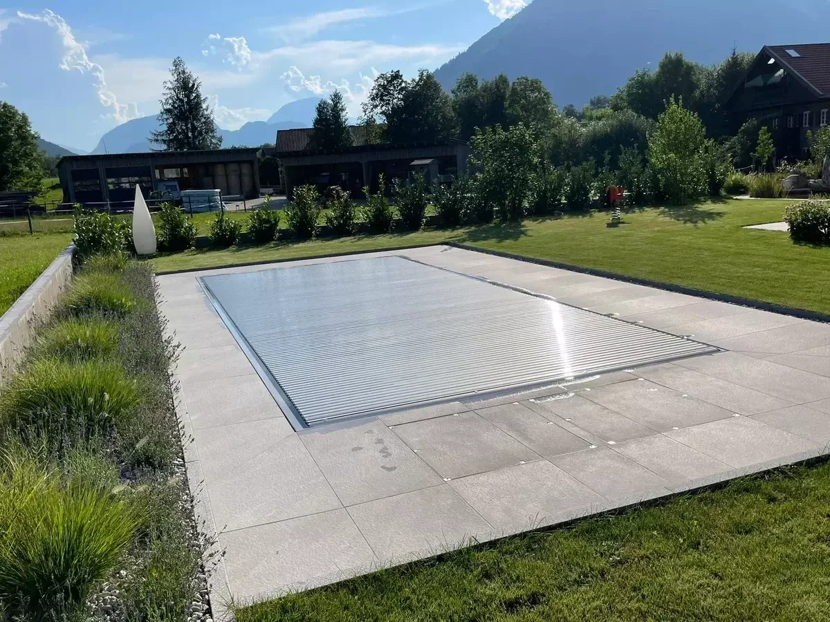 Die Unterflur-Abdeckung ist die ästhetisch ansprechendste Lösung, da die Wickelwelle unsichtbar unter Wasser oder in einem separaten Schacht untergebracht wird. Dadurch bleibt die Optik des Pools erhalten, während die Abdeckung zuverlässig Schutz bietet. Diese Variante ist besonders beliebt bei Neubauten oder umfassenden Pool-Sanierungen, da sie einen nahtlosen Übergang zwischen Pool und Umgebung ermöglicht.